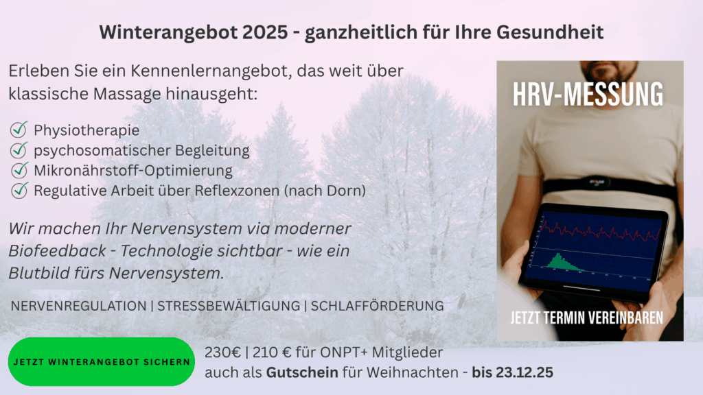 Unser diesjähriges Winterangebot verbindet moderne Biofeedback-Analyse, psychosomatische Begleitung und regulative Körperarbeit.